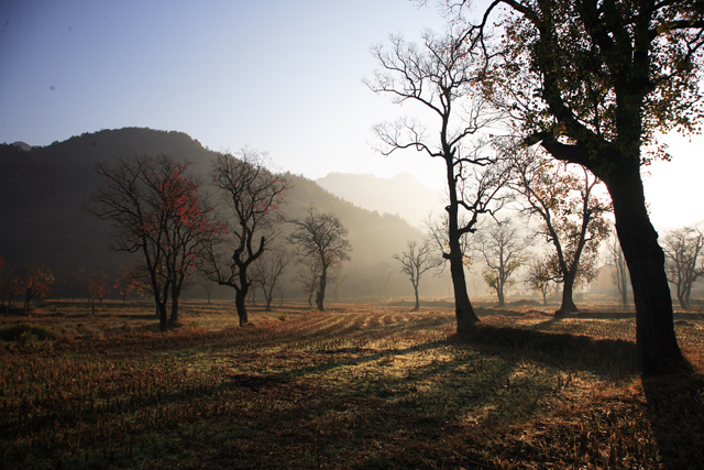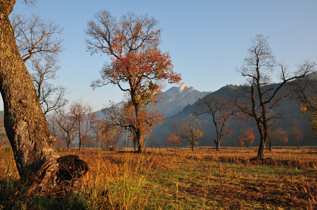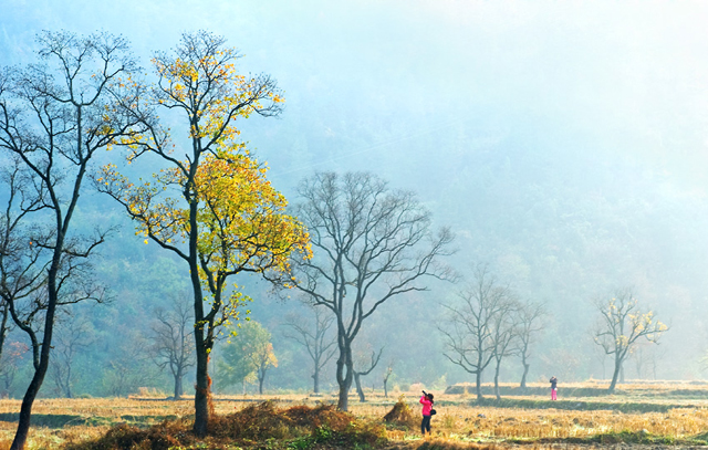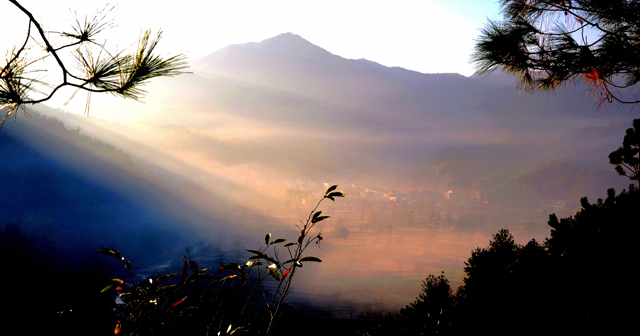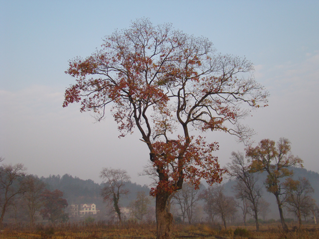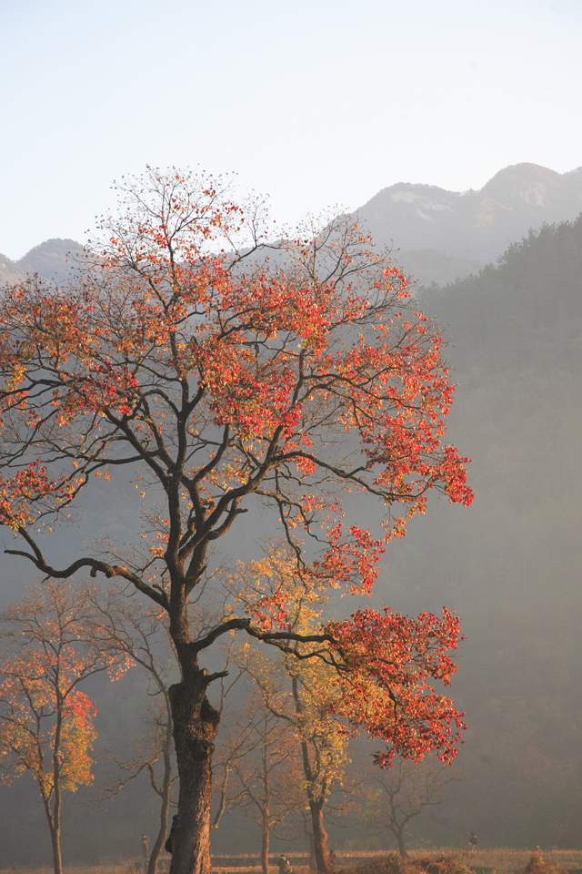 在鄂皖交界处的大别山主峰天堂寨脚下,坐落着一个叫“圣人堂”的小村庄,这里的秋天,漫山青松翠竹、乌桕婀娜、红叶遍野,素有“中国最美丽田园风光”之美誉,一日四时美景不同。