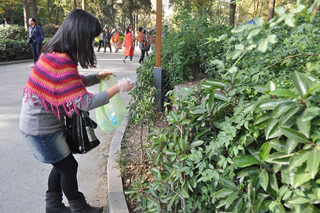 会员们在登山途中清捡身边垃圾