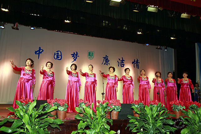 女声小合唱《中国梦》的表演者为来自基础医学院、药学院、宣传部、科技处、工会的在职教工以及4位离退休教师。她们通过优美的旋律、动人的歌声唱响了对实现民族伟大振兴中国梦的信心和期待,表达了对党、对祖国、对生活的热爱之情,获得了在场观众热烈的掌声。