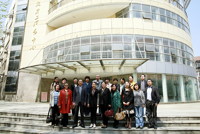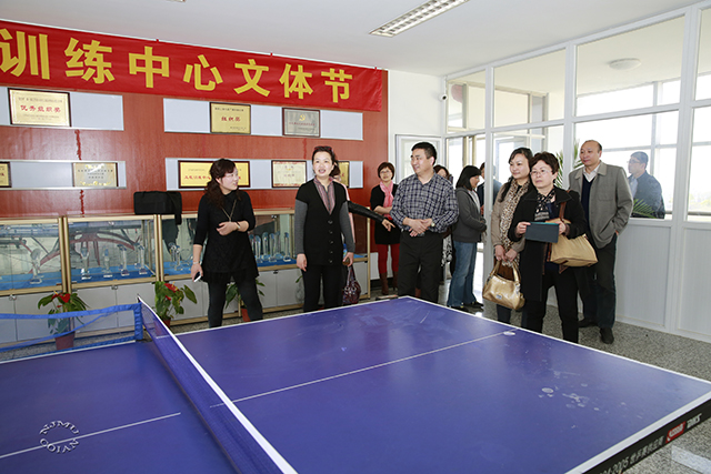 工会干部在南航教工活动中心参观合影