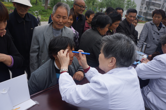 “原来还以为今天要下雨,专家不来了。”手里拿着两张处方,看了眼科后又看了心内科的一位大妈高兴的说,“我们也想到大医院看病,太远了,不方便,来了在家门口,多好呀,我们呀就一起来了。”