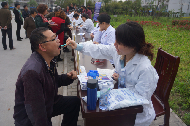 2014年4月25日下午,由校工会主办,一附院、二附院、附属口腔医院工会联合承办的南京医科大学附属医院“教师回报社会”大型义诊活动在扬州市江都区新城花苑社区开展,现场为百余位居民提供医疗服务和健康咨询。