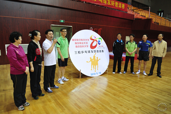 5月10日下午,由南京航空航天大学、南京林业大学、南京医科大学三校工会联合倡议举办的乒乓球友好邀请赛在我校江宁体育馆举行。