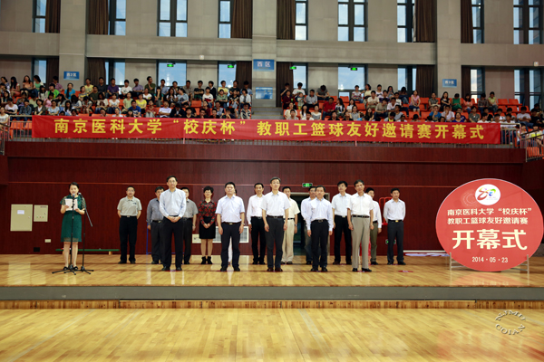 5月23日晚,江宁校区体育馆里一片欢乐祥和,南京医科大学“校庆杯”教职工篮球友好邀请赛开幕式暨首场比赛在这里举行。校领导陈琪、沈洪兵、石金楼、王林、范建出席开幕式,第一附属医院、第二附属医院、附属口腔医院等13家附属医院的领导也来到了开幕式现场。