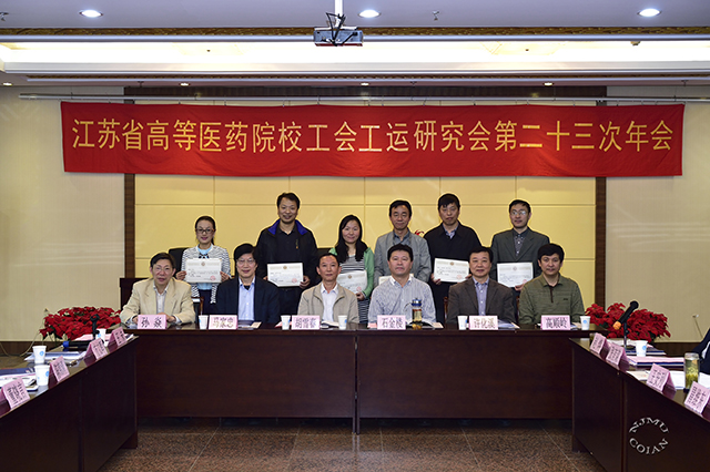 石金楼副书记致欢迎辞,会长单位南京中医药大学马家忠副书记发表讲话,省教科工会孙焱副主席宣读了年会论文评审结果。此次年会收到论文涉及教代会制度、模范教工之家建设、职工福利工作、基层工会建设、工会干部培养、工会宣传平台创新、工会在依法治国背景和幸福校园建设中的工作研究等多个主题,从不同角度为提升高校工会工作水平提供了借鉴和启示。经过评审委员会盲评评选出南京医科大学、南京大学、中国药科大学、南通大学、东南大学、江苏大学6家单位论文获奖,其中我校工会提交的论文获一等奖。会上,6家获奖单位代表进行了主题发言,各高校工会代表围绕时下工会工作中的热点、难点问题进行了广泛而深入的交流和研讨。