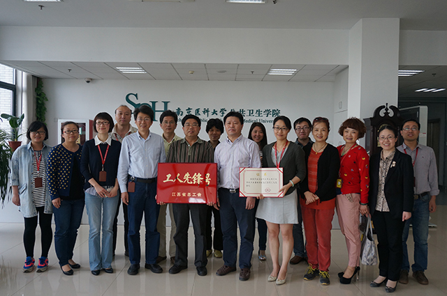近日,我校公共卫生学院卫生毒理学系被江苏省总工会授予“江苏省工人先锋号”荣誉称号。校党委副书记石金楼于5月5日下午为学系颁发荣誉奖牌和奖状,学系负责人刘起展教授、顾爱华副教授代表学系接受了奖牌和奖状。