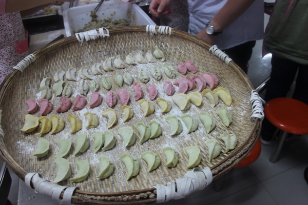 各代表队在规定时间内自主调馅、和面、擀面、包饺子,最终依据包饺子的速度、形状、口感、创意等方面由评委打分。每组队员都做了充分的准备,使出了看家绝活儿,不论是做馅还是和面都是煞有介事,虾仁馅儿、香菇馅儿、海鲜馅儿应有尽有;青菜汁面、玉米汁面、紫薯甘蓝汁面、西瓜汁面五彩缤纷;东北饺、三角饺、波波饺、创意动物饺别出心裁;水煮饺、蒸饺、锅贴饺各有特色。队员们忙忙碌碌、热火朝天、欢声笑语,当热气腾腾的饺子端上桌的时刻,大家欢呼雀跃,你品我尝,频频称赞!