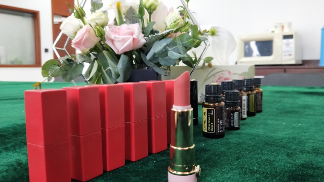 4月4日下午,分工会特邀芳香师详细介绍了制作过程及所用原材料,并带着大家一起做“细嗅精油”的放松动作。在舒缓的音乐声中,大家放松身心,静静地深呼吸,感受精油的芳香因子沁入细胞,令人身心愉悦,精神十足。制作中,大家各自选定自己心仪的色号,在老师的指导下用橄榄油、乳木果油、白蜂蜡等纯天然植物成分按一定比例、次序进行混合、加热、搅拌、脱模、组装……大约20分钟后,一支支独一无二的口红作品成功完成。