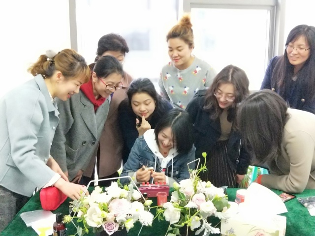 朱唇一点桃花殷,沉醉点点红唇间。 大家暂别繁忙的工作,在手工活动过程中分工合作,既发现了美,又创造了美,既收获了美丽,又增进了交流,有效提升了后勤处的凝聚力。(后勤管理处分工会供稿/图)