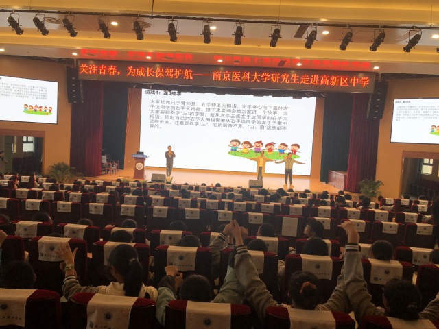 10月26日、11月16日,研究生院分团委、校工会联合南师附中、江宁高新区中学,以“关注青春,为成长保驾护航”为主题,为两所中学初一年级400多名学生开展青春健康教育系列活动。