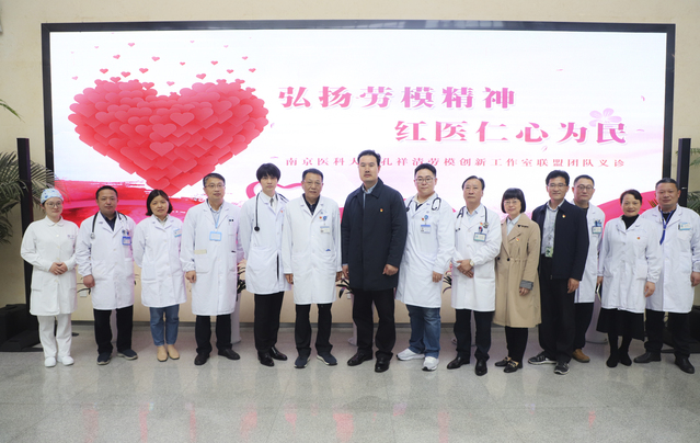 活动同步举行了“孔祥清劳模创新工作室联盟”揭牌仪式,劳模创新工作室联盟团队主要成员在附属江宁医院开展了“弘扬劳模精神 红医仁心为民”的义诊服务。在义诊现场,党员专家们为闻讯而来的群众认真做检查,耐心回答他们的疑问,并提出有针对性的诊疗建议。