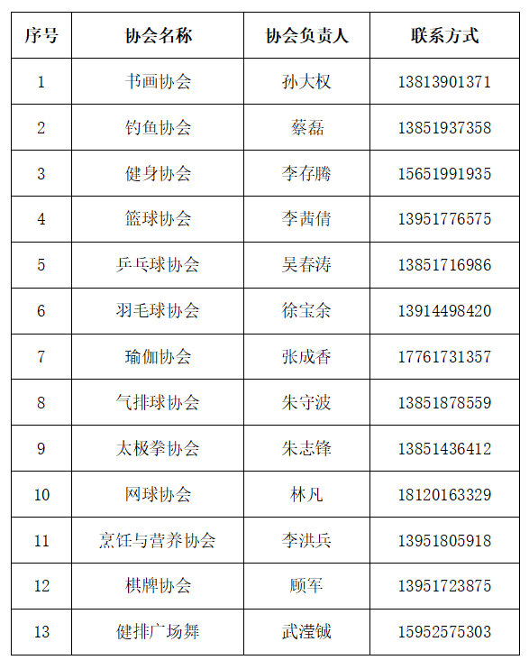 教职工文体协会联系人
