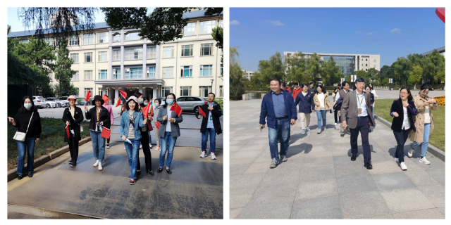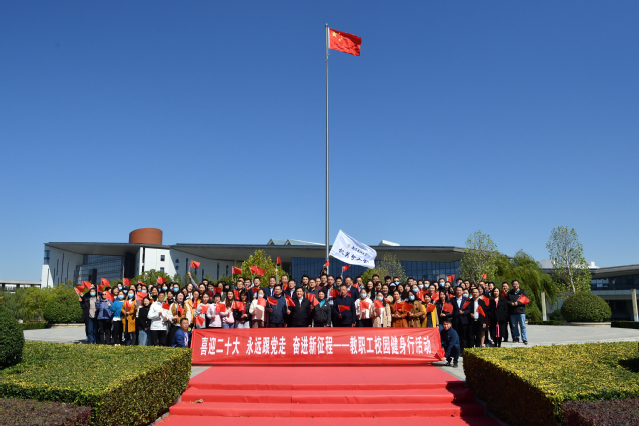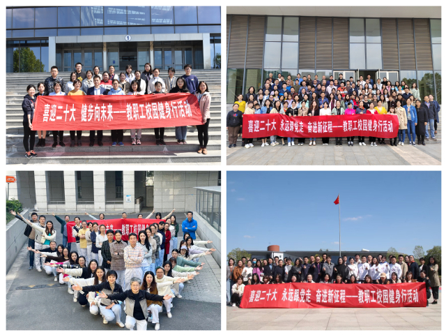 结合疫情防控要求,此次活动由分工会自行拟定路线在两校区分散进行。以喜闻乐见的健身行形式,鼓励广大教职工以积极、健康、奋进的姿态献礼党的二十大。老师们一路携手同行、畅谈交流,领略秋日校园的美景与魅力。过程中,大家纷纷在国旗花坛、五心广场、教学楼、办公楼、体育场、五台校区二号楼等校园标志性建筑前合影留念,呈现出“喜迎二十大”等创意图案,传递了浓浓的爱党、爱国、爱校情怀。