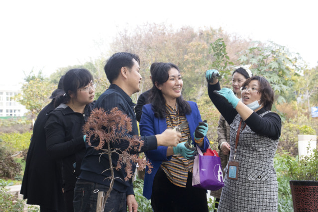 活动开始,药物分析学系金阳老师介绍了南京医科大学药用植物园的基本情况,并带队参观,现场讲解园内药用植物的性质和药用价值。同时,还介绍了入侵物种加拿大一枝黄花的危害和治理方法,及其与本土药用的一枝黄花的区别。此外,金老师还提醒大家:秋天清理加拿大一枝黄花时要注意铲除其根系,避免其花穗部分与土壤的直接接触。随后,周好老师向参加活动的老师们介绍了药用玫瑰扦插的意义及方法。经过周老师的指导,老师们剪下药用玫瑰的枝条,前往温室大棚进行了扦插。
