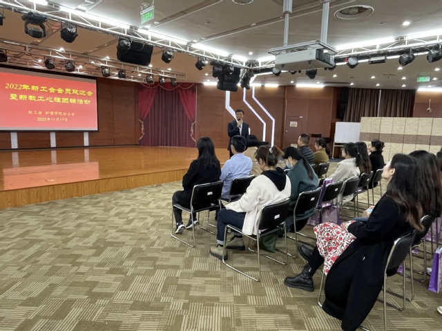 11月17日,由校工会联合护理学院分工会开展的新工会会员欢迎会暨新教工心理团辅活动在德馨楼C212教工之家报告厅举行。2022年新入职教职工,校工会、护理学院分工会负责人和工作人员参加活动。活动由护理学院分工会主席陈龙主持。