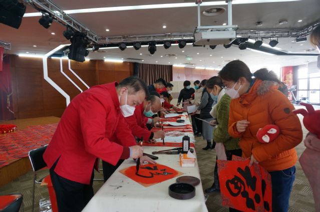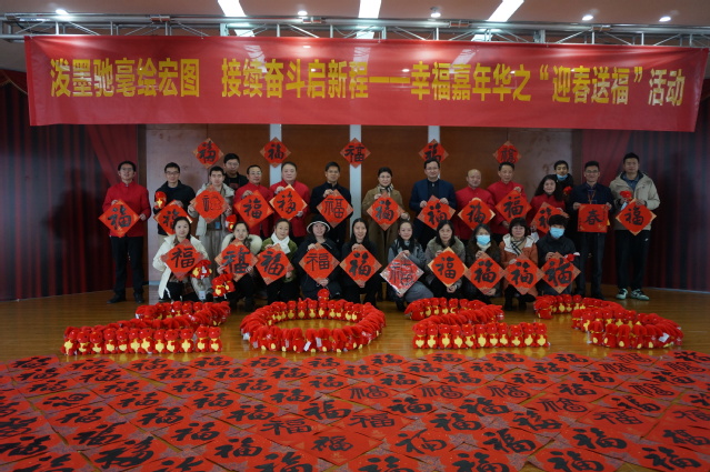 1月6日,校工会在教工之家举办幸福嘉年华“迎春送福”活动,校领导徐珊、沈瑞林莅临现场关心指导。活动面向教职工送出春联60余副、“福”字700余幅。