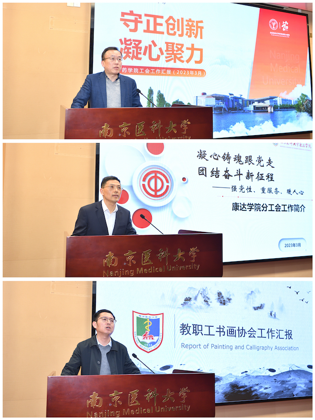 祖勤主席传达了上级工会的会议精神,对工会全年重点工作作详细部署,并对相关事项做具体要求和说明。药学院党委书记、分工会主席马俊,康达学院党委书记、分工会主席张鸿来,教职工书画协会负责人孙大权先后交流分享了基层分工会和教职工文体协会建设的先进经验。