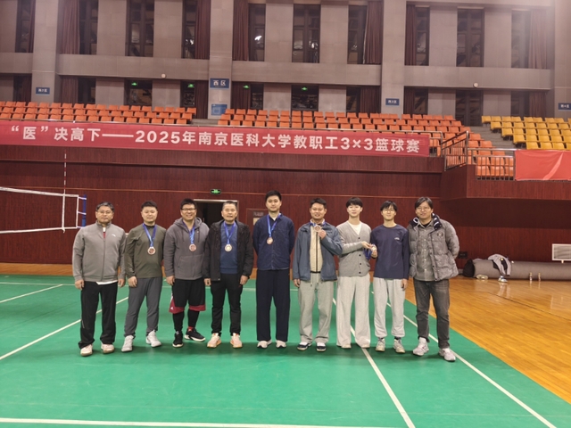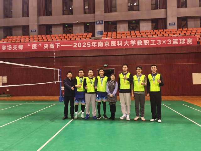 比赛由校工会和体育部联合主办、教职工篮球协会承办,分为12月18日的小组赛与12月22日的决赛两个阶段进行。跨部门、跨年龄(23岁-57岁)组成的6支联合队伍不仅考验了队员们快速建立默契、协同作战的能力,更有效促进了不同部门教职工之间的交流与融合。赛场上,既有青年队员的速度与活力,也有中年队员的经验与沉稳,充分展现了南医大教职工团结协作、积极向上的精神风貌。经过多轮精彩对战,比赛最终决出前四强和最有价值球员(MVP)。比赛全程采用国际篮联三人篮球标准规则,由国际级篮球裁判员施启蓉老师与教职工篮球协会指导老师杭晓川共同执裁,在保障比赛顺利进行的同时,也为大家提供了一次难得的学习和体验专业篮球赛事的机会。