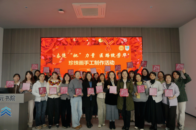 为进一步丰富女教职工业余文化生活,3月20日中午,校工会在天元书院举办“奋进‘她’力量 医路绽芳华”珍珠画手工制作活动。百余名女教职工欢聚一堂,共赴这场指尖上的艺术之约。