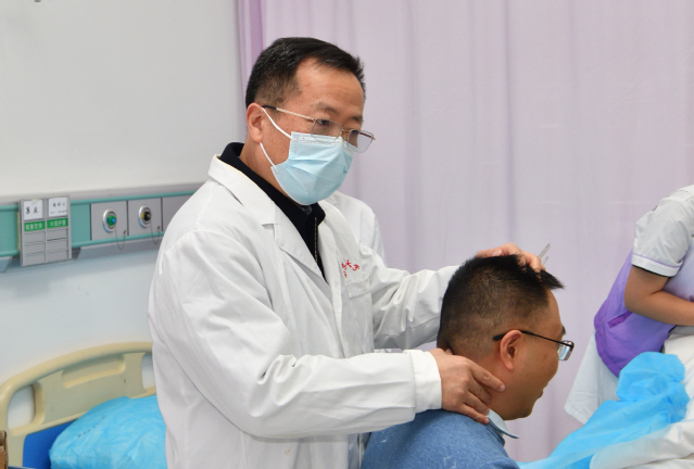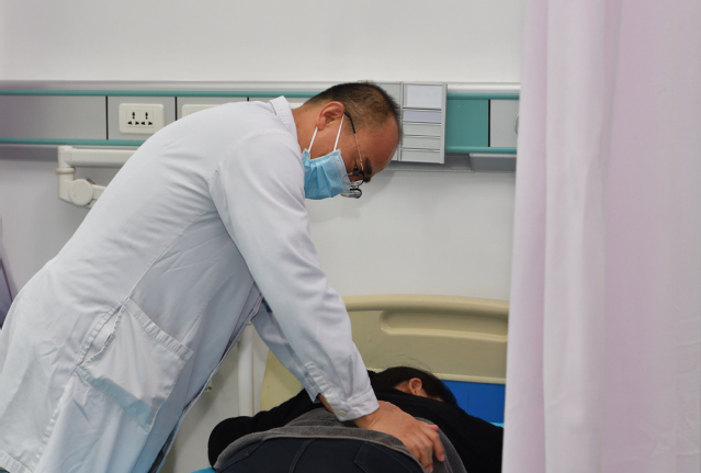 活动分为义诊咨询、中医项目和健康筛查三大板块,涵盖中医科、心血管内科、消化内科、内分泌科、神经内科、医疗美容科等多个科室。在义诊咨询区,专家们耐心细致地询问教职工的身体状况,查阅既往病历和体检报告,针对常见病、慢性病提供专业的诊疗建议和用药指导。在中医项目区,夏有兵副书记参与到针灸项目的服务中,与其他专家一同为教职工把脉问诊、施针治疗,为患有颈肩腰腿痛、失眠、月经失调等疾病的教职工缓解病痛。在健康筛查区,颈动脉超声检查和动脉粥样硬化筛查有序进行,帮助教职工及时了解自身血管健康状况,做到早预防、早治疗。